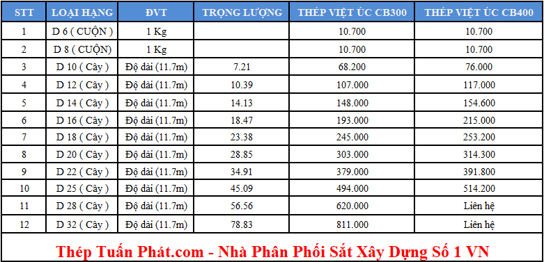 - Hóa đơn: Có xuất hóa đơn đỏ nếu khách hàng có yêu cầu. Lưu ý báo giá thép Miền Nam trên chưa có 10% VAT