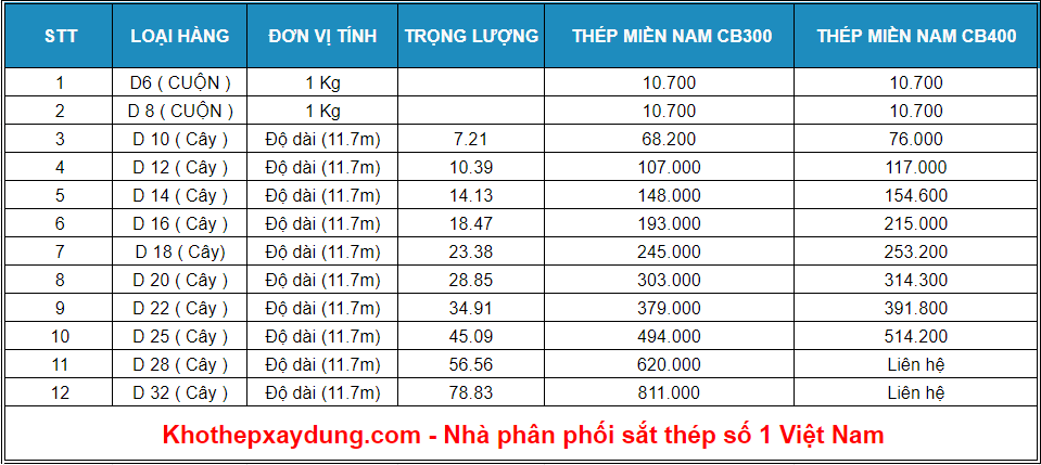 Đây là bảng giá thép miền nam mới nhất. mời quý khách tham khảo