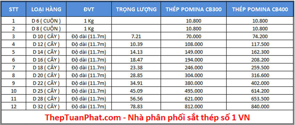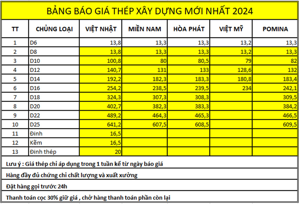 Trên đây là toàn bộ những bảng báo giá thép tại nha trang chi tiết nhất chúng tôi muốn gửi đến quý bạn.