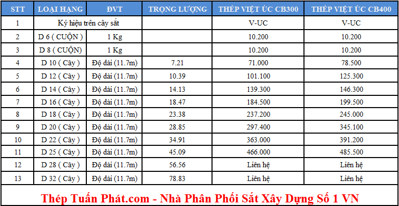 Thép Việt Úc chúng tôi cung cấp bao gồm Việt Nam Úc cuộn, rebar, rebar Việt Nam Úc từ 6 đến 32... với các lớp thép chính như: CT3, CB240, CB300V, SD295, CB400V, SD390, CB500V, SD490......